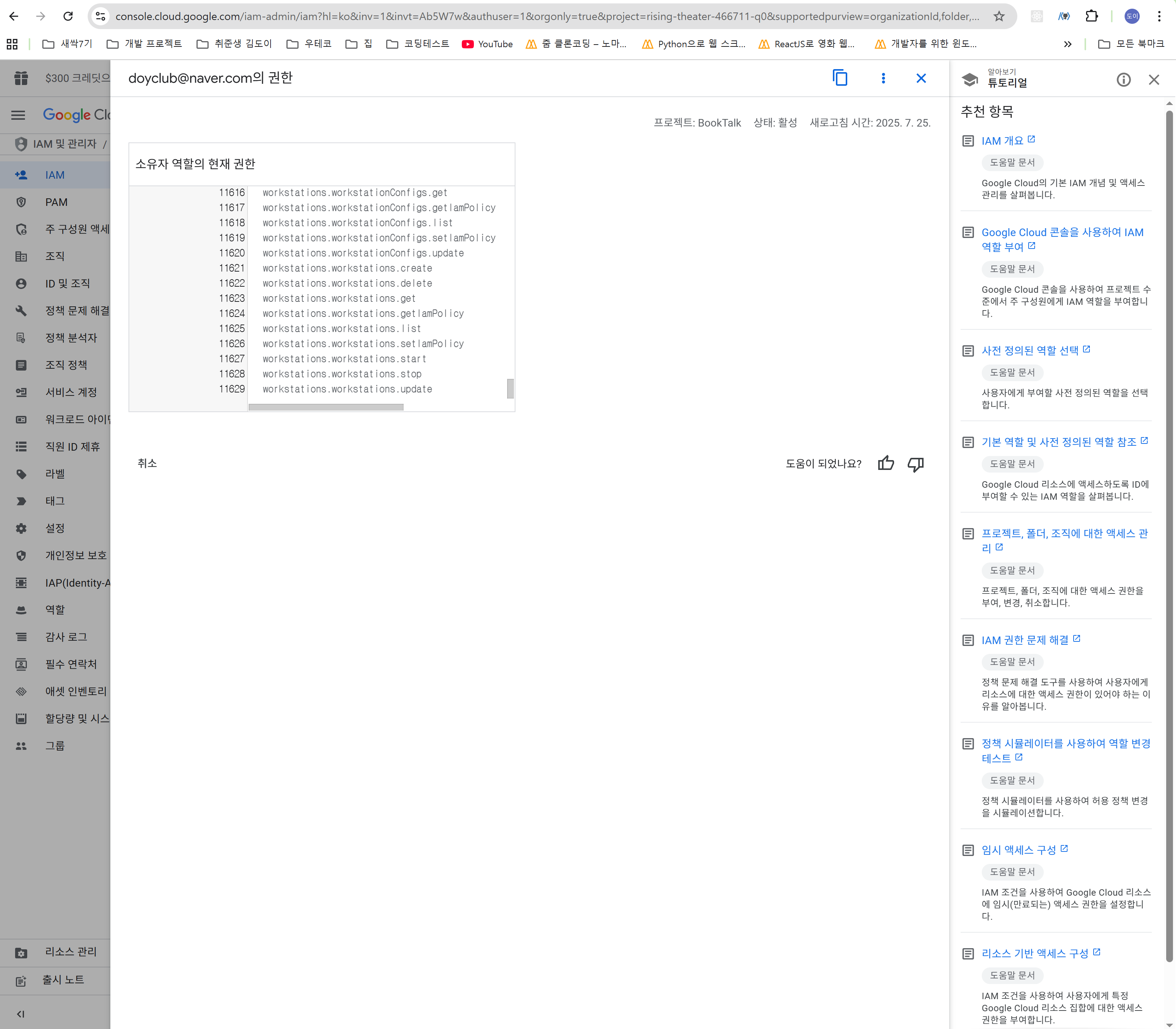 그리고 삭제하며 IAM 및 관리자 에서 권한을 확인해봤는데, 무슨 만개가넘는 권한이 되어있었다. chatGPT한테 물어보니 내 계정 자체를 완전히 꼬이게 만든거라며 웬만한 클릭 몇번으로 내 선에선 복구가 불가능하다고, 구글클라우드에 문의를 하라고 했는데 -> 나는 Free Tier라서 아니나 다를까 해줄 수 있는 게 하나도 없다~ 라고 시전하신다~ ㅋㅋ(이번 팀플하면서 공유DB 내가 만들어봄으로 참 많은 경험을 하고 뼈저리게 느낀 게 많았다^^)