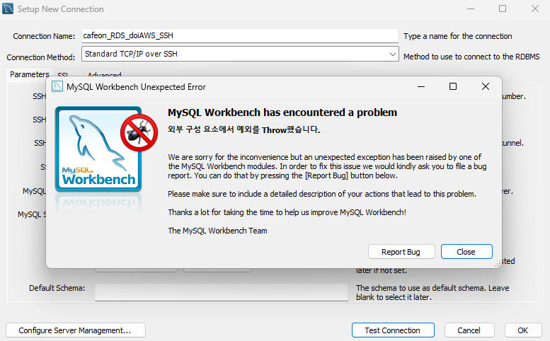 -> 이 상태에서는 SSH터널을 workbench가 열 수 없다